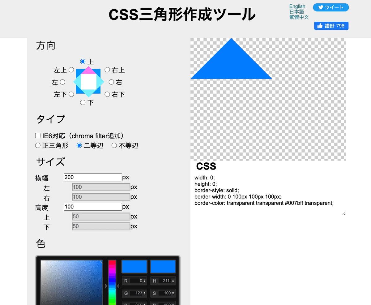 CSSで三角形を作るときのコード生成ジェネレーター。