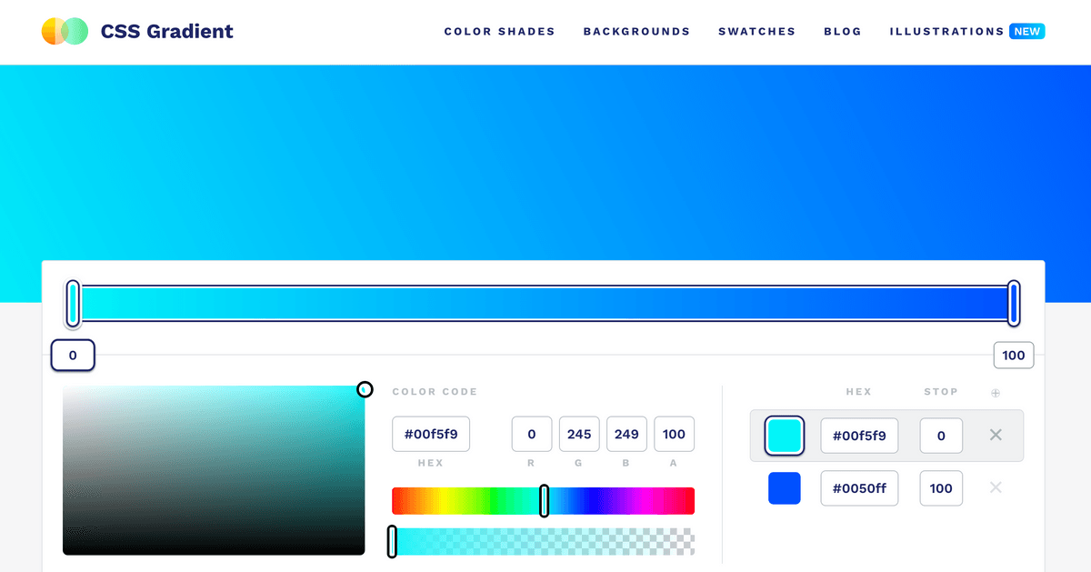 CSSグラデーションのコードを生成できるジェネレーター。