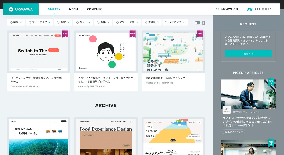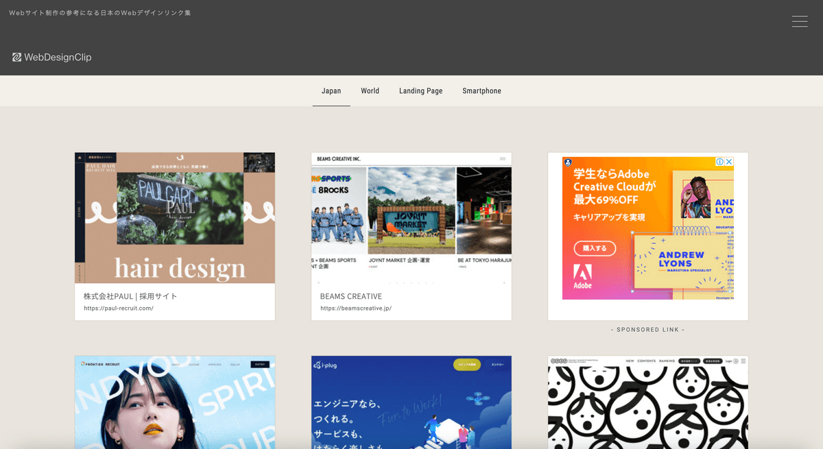 個人的に一番お世話になっているサイト!Webサイトを国内、海外、LP、スマホごとに見れるギャラリーサイト。