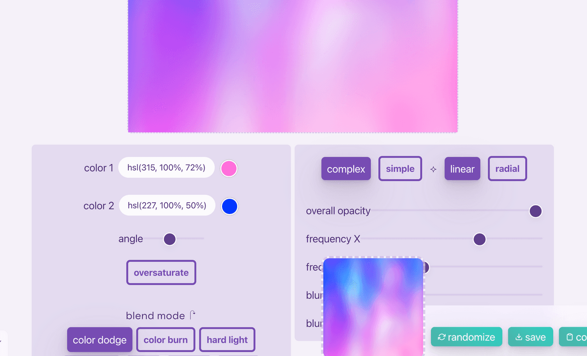 様々なパターンのグラデーションをSVGで生成できるサービス。