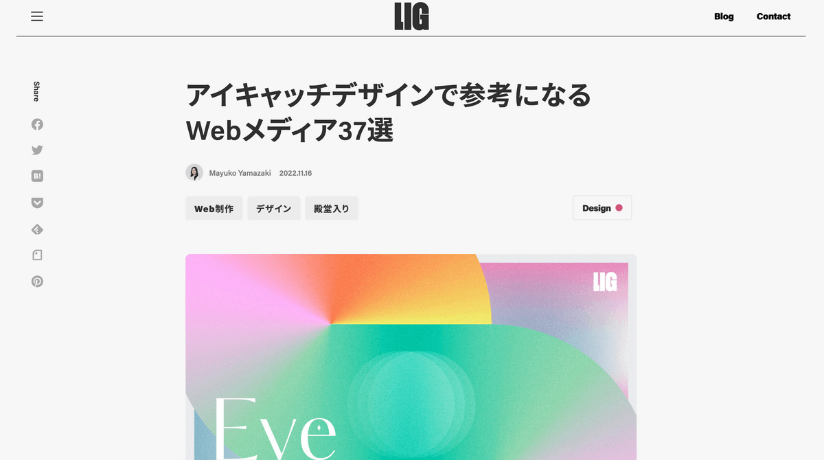 LIGのブログ記事のひとつ。アイキャッチやサムネイルの参考になるサイトをまとめた記事。