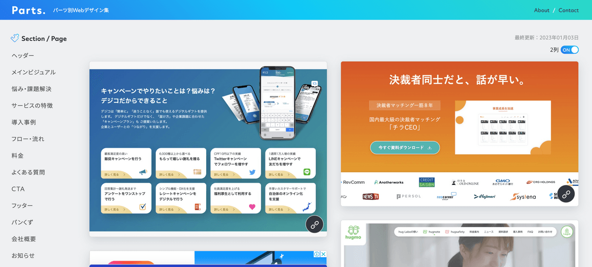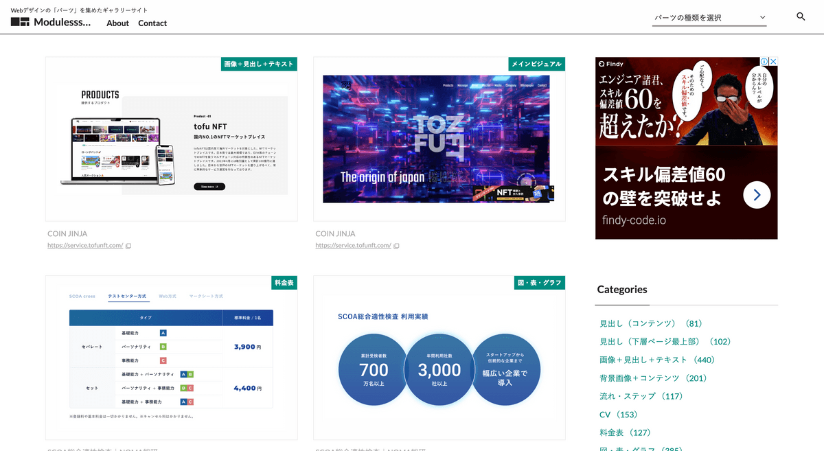 見出しや図など様々なWebデザインの「パーツ」を集めたギャラリーサイト。